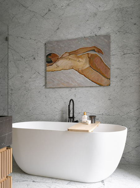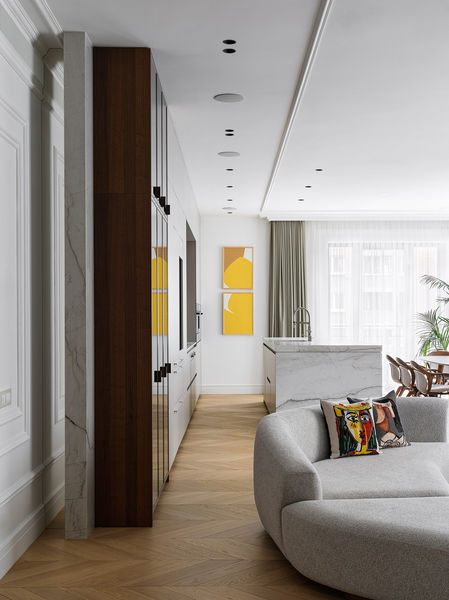 Квартира расположена в клубном доме «Бунин» на Плющихе — здании 1903 года постройки, спроектированном архитектором Василием Шаубом и прошедшем реновацию. Квартира была взята в ра боту с существующей отделкой.