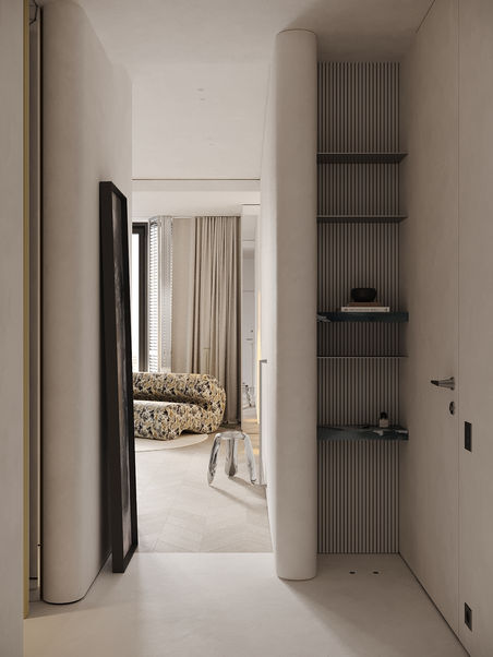 Этот интерьер — пример того, как даже в компактной площади можно создать выразительное, функциональное и утонченное пространство, не жертвуя комфортом. Квартира оформлена в духе совр еменного минимализма с элементами арт-дизайна и винтажными отсылками.